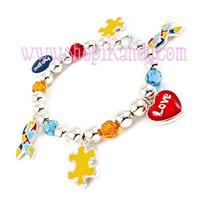 BRACELET / STRETCH / RIBBON / HEART / PUZZLE / BEAD / 10 MM WIDTH
