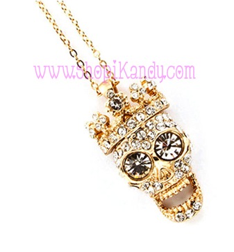 NECKLACE: 18"L + 2"EXT / METAL HORSESHOE PENDANT: 3.75"DROP / CRYSTAL STUD SKULLS