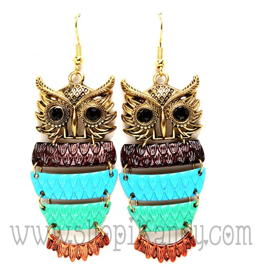 FISH HOOK EARRINGS / OWL w/MOVING JOINTS / 2" DROP