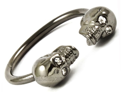 2.25"W METAL BRACELET / HINGED CLOSURE / PAVE CRYSTAL SKULL