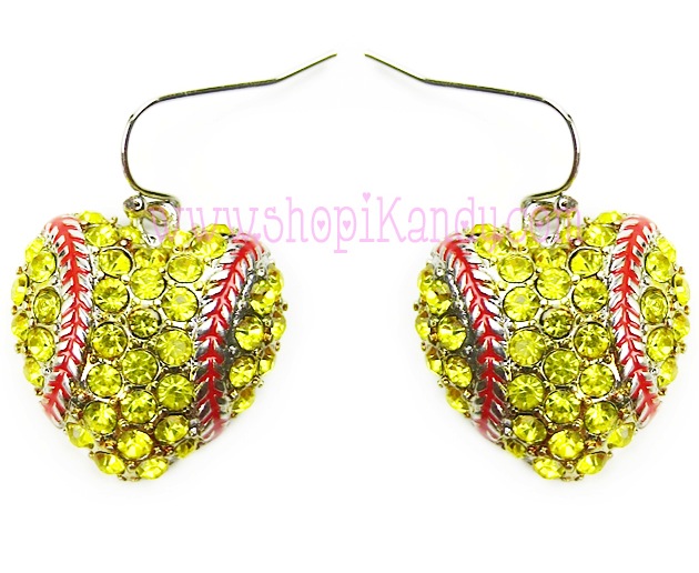 1" / FISH HOOK EARRINGS / SOFTBALL MOM / CRYSTAL STUDS